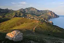Селище розташоване на південному сході півострова на березі Чорного моря в приморській долині, оточеній хребтами Кара-Дага та Ечкі-Дага. Долина і схили прилеглих гір покриті лісами, садами і виноградниками. Є курортним містечком, звідси й походить назва населеного пункту.