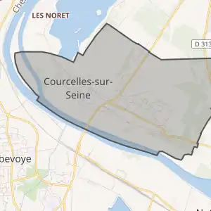 - Courcelles-sur-Seine sur le site de l'Insee, наведено за французькою вікіпедією