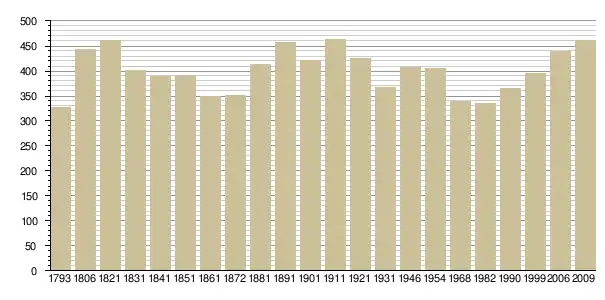 Динаміка населення (base Cassini de l'EHESS pour les nombres retenus jusque 1962[3], base Insee à partir de 1968 (population sans doubles comptes puis population municipale à partir de 2006)[4] · [5] ):