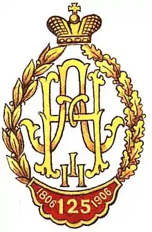 - Георгіївський прапор з написом «За Севастополь у 1854—55 роках» та «1806—1906», з Олександрівською ювілейною стрічкою.