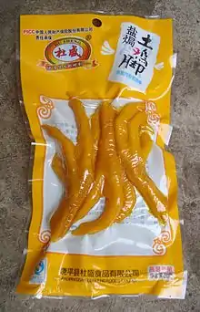 У Китаї популярні закусочні, які спеціалізуються на приготуванні напівфабрикатів, таких як yabozi (шия качки), lu ji zhua (鹵雞爪мариновані курячі лапки), які готують на повільному вогні в соєвому соусі з сичуанським перцем, гвоздикою, часником, бад'яном, корицею та шматочками чилі. Фасовані курячі лапки продаються в більшості маркетів як снеки, іноді приправлені рисовим оцтом чи перцем чилі.