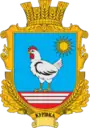 В лазуровому щиті срібна курка з золотими лапами і червоним гребенем, супроводжувана в лівому верхньому кутку золотим шістнадцятипроменевим сонцем. В червоній базі срібні нитяні гамаїди. Щит вписаний у декоративний картуш і увінчаний золотою сільською короною. Унизу картуша напис "КУРІВКА".