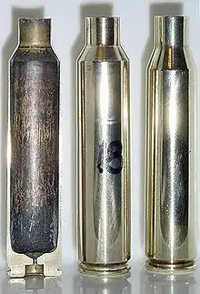 - Видування. Така операція дає змогу змістити плече гільзи вперед для збільшення об'єму гільзи. Відбувається при формуванні пострілом.