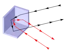 - Доведення наведено в: Кравцов В., Сербин И. Уголковые отражатели. — Квант, 1978. — № 12. — С. 7—9,46.(рос.)