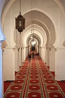 Головний молитовний зал вляє собою гіпостильний зал із понад сотнею стовпів, які підтримують підковоподібні арки вздовж паралельних нав[4].