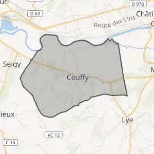 - Розташування муніципалітету Куффі на мапі Франції та сусідні муніципалітети