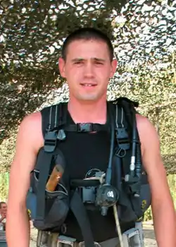Капітан, заступник командира батальйону з озброєння, 321-й окремий інженерний батальйон. На схід України відбув в рамках чергової ротації наприкінці лютого 2016 року.