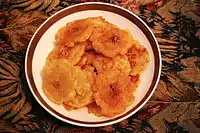 - Тостонес — відомий як fritos verdes. Це смажені скибочки зеленого плантану, які солять. Вперше з'явився у першій кулінарній книзі Пуерто-Рико, El Cocinero Puertorriqueño, у 1859 році під назвою fritos verde. Ця назва досі використовується тільки в Домініканській Республіці. Усі три острови претендують на батьківщину стави.