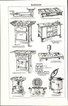 Способи готування на відкритому вогні мали ряд недоліків, внаслідок чого з XVI ст. було впроваджено кілька поліпшень: всі ці пристосування були небезпечні, робили багато диму, ефективність нагріву була низькою. Першим кроком була «вогнева камера»: вогонь розкладався у вогнищі, обмеженому з трьох боків стінками і перекритому зверху залізною плитою. Це викликало зміну й у формі варильного посуду, в нього з'явилося плоске дно. Перша конструкція з повністю закритим вогнем з'явилася в 1735 році, створена французьким архітектором Франсуа Кювілльє. Ця плита являла собою муровану конструкцію з кількома отворами, накритими перфорованими залізними пластинами. Ближче до кінця XVIII ст. пристрій був поліпшений використанням верхньої залізної плити, в отворах якої встановлювалися горщики.
