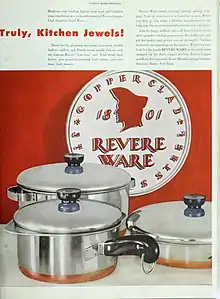 Мідний посуд з'явилася близько 10 тисяч років тому[12]. Мідь має хорошу теплопровідність, забезпечує швидкий та рівномірний нагрів. Мідний посуд міцний і привабливо виглядає. Однак, він порівняно важкий і вимагає ретельного чищення від оксидів, що утворюються на його поверхні і не підходить для кислих продуктів[15]. У мідному посуді простіше збиваються білки, зелені овочі стають яскравішими. Постійне вживання їжі, приготовленій в мідному посуді, може бути шкідливим для здоров'я. Для захисту продуктів від контакту з поверхнею міді застосовують покриття оловом (лудіння), а в наші дні — сталлю[12].