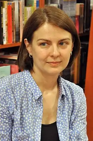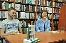 ![]() Оксана Куценко на презентації книжки «Лялечки» в книгарні «Є» в Тернополі (17.06.2016) | ||||