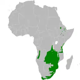 - B. b. tongensis Macdonald, 1939 — від південно-східної Кенії до сходу ПАР;