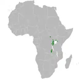 Угандійські куцокрили живуть на болотах Демократичної Республіки Конго, Танзанії, Кенії, Уганди, Руанди, Бурунді і Замбії.