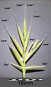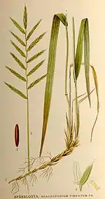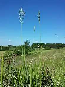 Багаторічна трав'яниста рослина (30)50–80(125) см завдовжки з повзучим подовженим лускатим кореневищем. Лігула 1–2 мм завдовжки. Листки плоскі, пластини 15–45 см × 2–6 мм, поверхні шершаві, безволосі або волосисті. Суцвіття — китиця 4–25 см завдовжки, містять 3–15 родючих колосків. Колоски містять 8–22 родючих квіточок; зі зменшеними квіточками на вершині. Колоски ланцетні або довгасті; стиснуті з боків; 20–40 мм завдовжки; розпадаються у зрілості під кожною родючою квіточкою. Колоскові луски більш-менш волосисті. Нижня квіткова луска на всій поверхні або тільки по краях війчасті-волосиста, з остюком 3.5–4.5 мм завдовжки. Пиляків 3; 3.5–4.5 мм завдовжки. Зернівки волосисті на верхівці; верхівки м'ясисті[2][3].