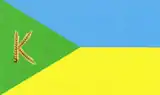 Прямокутне полотнище складається з трьох частин. Верхня половина прапора блакитного кольору, нижня — жовтого кольору, ліва частина — трикутної форми зеленого кольору із зображенням трьох колосків пшениці у вигляді букви «К». Блакитний — колір неба, височини устремлінь, вдосконалення духу, жовтий — могутність, багатство та родючість.