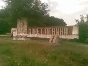 ![]() Стела колгоспу «Завіт Леніна» на в'їзді до села | |