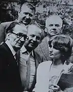 М. Івасюк, А. Добрянський, А. Кушніренко, редактор газети «Радянська Буковина» К. Демочко, С. Ротару (1972 рік)