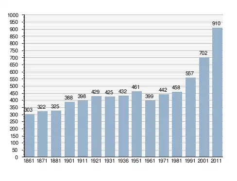 Станом на 31 грудня 2014 року в муніципалітеті офіційно проживали 94 іноземці з 20 країн, серед них 26 громадян країн Євросоюзу та 3 громадяни України.[4]