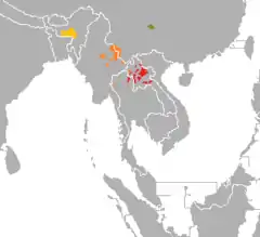 ![]() Мапа поширення північних мон-кхмерських мов: Кхасійські мови | |
