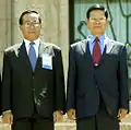 Со Він (ліворуч), який змінив Кхін Ньюта (праворуч) на посаді прем'єра.