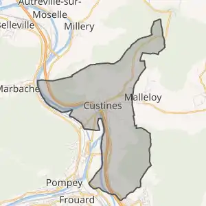 - Custines sur le site de l'Insee, наведено за французькою вікіпедією