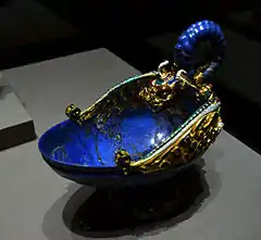 | Матеріал | лазурит, золото з емаллю, рубіни, перли, гранати |