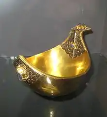Відомі ковші з двома ручками — одну з них часто робили у вигляді голови птаха або коня.