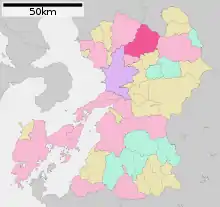- Хіґашіде М. Історія міст префектури Кумамото. Адміністративний поділ Японії. (японською). Архів оригіналу за 27 червня 2013. Процитовано 20 вересня 2012.