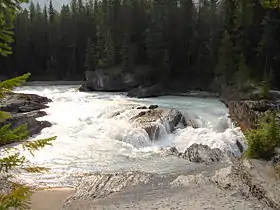 Річка має три водоспади вздовж своєї течії. Перший - Каскад Кікінґ-Горс, довгий ступінчастий водоспад, що спадає під першим шосейним мостом неподалік озера Вапта. Другий водоспад - це природний міст -водоспад у Філді. Останній і найбільший водоспад - близько 30 м заввишки і близько 150 м завширшки водоспад Вапта, один з найбільших водоспадів Канади за обсягом і шириною.