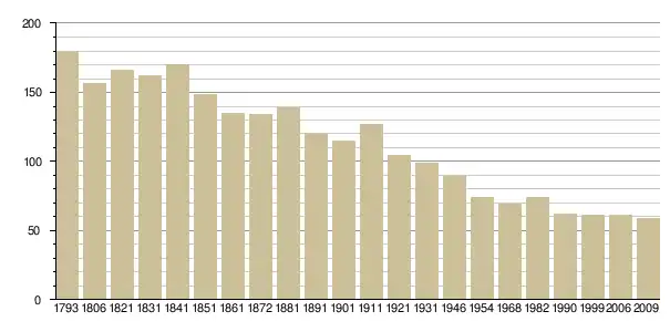 Динаміка населення (base Cassini de l'EHESS pour les nombres retenus jusque 1962[3], base Insee à partir de 1968 (population sans doubles comptes puis population municipale à partir de 2006)[4] · [5] ):