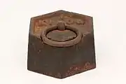 | Однокілограмова чавунна гиря, виготовлена згідно з рекомендаціями R52 Міжнародної організації законодавчої метрології для чавунних шестикутних гир[2] | ||||
