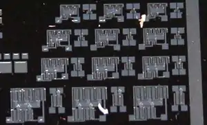 - Багато пластин включають кільцевий осцилятор як тестову структуру. Вони використовуються під час випробувань пластин для вимірювання ефекту від змін виробничого процесу.[9]
