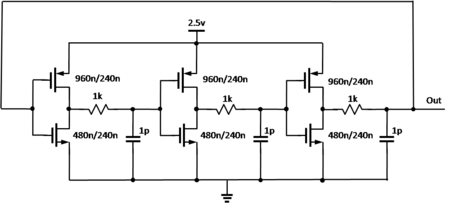- Керований напругою осцилятор у більшості ФАПЧ побудований з кільцевого осцилятора.[5]