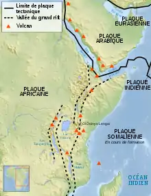 Велика рифтова долина, яка проходить через Східну Африку з півночі на південь, утворюється в міоцені з початком відділення сомалійської плити від африканської. В області, що відповідає східній гілці цього розколу, розломи з'являються в пліоцені і починають накопичуватися алювіальні наноси, що покривають велику частину останців. Розломи сприяють відкриттю грабенів і підйому магми. Кіліманджаро, як і гора Меру, виник на грабені, який пройшов у напрямку з захід-північ-захід на схід-південь-схід формуючи гребінь Амбозелі (англ. Amboseli).