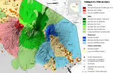Вулканізм Кіліманджаро почався в пліоцені і утворення всієї конструкції відбувалося в чотири великі етапи, під час яких в цілому виділилося 5 000 км³ вулканічної породи. Останні три сформували пов'язані стратовулкани, які стали основою Шири, Кібо і Мавензі. Розкол, що проходив через них у напрямку з захід-північ-захід на схід-південь-схід, також призвів до утворення численних супутніх конусів, розділених, приблизно, на вісім зон. Деякі вулканічні жерла, розташовані на вершині, могли були активні під час Голоцену.