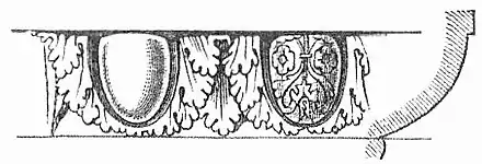 - доричний кіматій — у вигляді прямого і зворотного гуська.