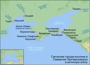 | Калос-Лімен · Керкінітида · Кіммерік · Солгата · Солдая · Харакс · Херсонес Таврійський · Страбонів Херсонес · Феодосія · |