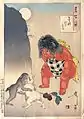 Кінтаро спостерігає за боєм мавпи і зайця. Цукіока Йосітосі, "Сто видів Місяця", 87.