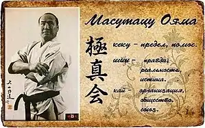 Масутацу Ояма був незадоволений ефективністю бойових систем, якими він займався. Він пішов у гори, де сам інтенсивно тренувався протягом півтора року. Пізніше здійснив турне по США, де проводив спаринги із боксерами, професійними борцями і просто вуличними бійцями; не задовольняючись цим, він виступав як своєрідний тореадор у боях із биками, убивши трьох і поламавши роги іншим. Почав навчати карате в 1946 році, свою власну систему створив у 1956 році. Наголос робиться більше на бойову ефективність, ніж на оздоровчий аспект або розвиток моральних якостей. Масутацу Ояма говорив про виродження японських і окінавських стилів карате, називаючи їх (у сучасному стані) «танцем карате».