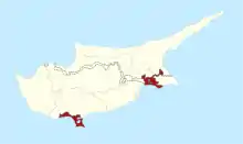 Відповідно до Цюрихсько-лондонських угод від 1960 року про надання незалежності Кіпру, Велика Британія зберегла на острові під своїм повним суверенітетом дві великі військові бази — Акротирі поблизу Лімасола і Декелія на схід від Ларнаки. Бази займають приблизно 254 км², або 3 % від території всього острова. Їхнє стратегічне значення визначається близькістю до Суецького каналу і Близького Сходу. Крім цього, Велика Британія тримає на Кіпрі потужні радіолокаційні станції, що здійснюють прослуховування всієї території Північної Африки і Близького Сходу.