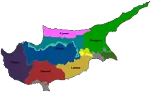Кіпр поділено на шість районів (грец. επαρχίες — єпархій), з центрами в однойменних містах:
