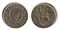 50 центів | композиція, заснована на зображенні монети міста-держави Маріон IV ст до н. е. з викраденням Європи Зевсом; знизу номінал «50» | 1991, 1993, 1994, 1996, 1998, 2002, 2004 |