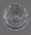 5 центів | малюнок голови бика у стилі неоліту, цифра 5 | 1983, 1985, 1987, 1988, 1990—1994, 1998, 2001, 2004 | |