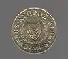 20 центів | изображение Зенона з Кітіону (334—262 до н. е.), давньогрецького філософа из Кітіону; справа знизу номінал «20»; зліва напівколом «ΖΗΝΩΝ Ο ΚΙΤΙΕΥΣ» | 1989—1994, 1998, 2001, 2004 | |