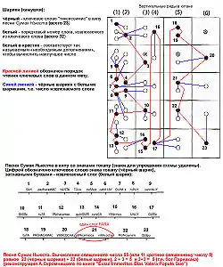 - Ниточка на головному шнурі, спрямована в протилежну сторону від звисаючих ниток (тобто нагору) і вставлена між ними. Служила, очевидно, роздільником.