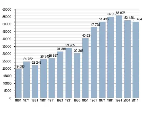 Станом на 31 грудня 2014 року в муніципалітеті офіційно проживало 2397 іноземців з 88 країн, серед них 998 громадян країн Євросоюзу та 143 громадяни України.[4]