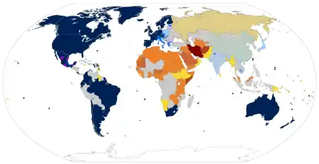 (включаючи країни, де закони ще не набули чинності):