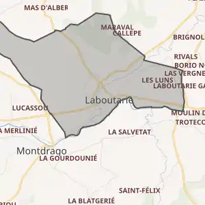 - Розташування муніципалітету Лабутарі на мапі Франції та сусідні муніципалітети