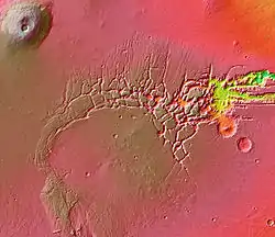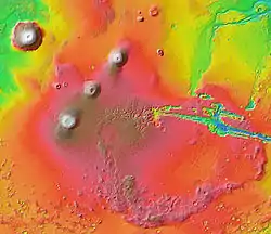 - Tanaka K. L., Davis P. A. (1988). Tectonic history of the Syria Planum province of Mars. Journal of Geophysical Research 93 (B12): 14893–14917. Bibcode:1988JGR....9314893T. doi:10.1029/JB093iB12p14893.