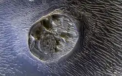 Знайдено там і деталь рельєфу, для якої деякі дослідники припускають льодовикове походження. Це пагорб діаметром близько 2 км, у якого північно-східний схил набагато крутіший за протилежний. Знаходиться він за координатами 8.33° пд. ш. 93.66° зх. д.[25]